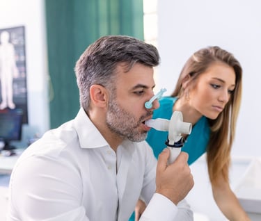 A Espirometria é um exame funcional pulmonar que mede a quantidade de ar que a pessoa consegue inspirar e expirar, além de avaliar a velocidade de expiração. É utilizado para detectar doenças respiratórias como asma, DPOC (Doença Pulmonar Obstrutiva Crônica) e outras condições pulmonares.